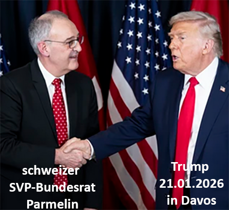 In gleicher Weise nehmen SVP-BR Parmelin und FDP-BR Keller-Sutter Trumps Herabsetzung der Schweiz und Europas auf schweizer Boden ohne Widerrede hin.