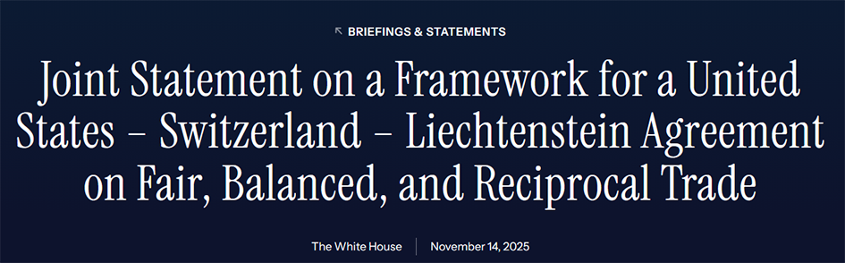 Anders die Schweiz. Sie ist “on the menu» von Trump. Das zeigt das Joint Statement vom 14.11.2025.