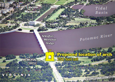 Trump präsentierte den milliardenschweren Sendboten aus der Schweiz seinen Triumphbogen am Potomac gegenüber dem Lincoln Memorial als privates Investitionsobjekt.