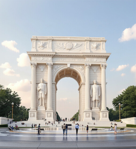 Trump will seinen 76m hohen und 76m breiten Triumphbogen für den 4. Juli 2026 aufstellen lassen.